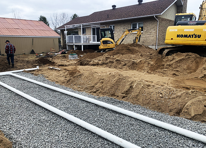 Nous sommes spécialisés en réfection et/ou installation de fosse septique et de champ d'épuration de toutes sortes. Nous sommes certifiés par la Régie du bâtiment du Québec pour l'installation de système d'assainissement autonome. Grâce à notre machinerie et notre savoir-faire, nous vous offrons un service clé en main de l'excavation au terrassement.